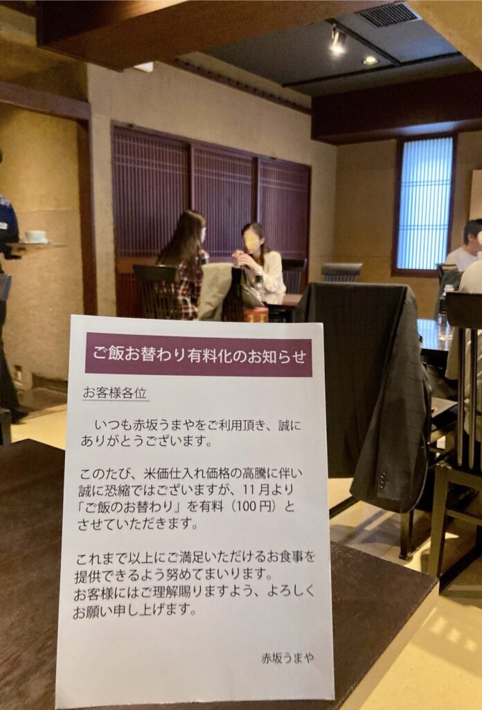 ごはんのおかわりは➕100円となります