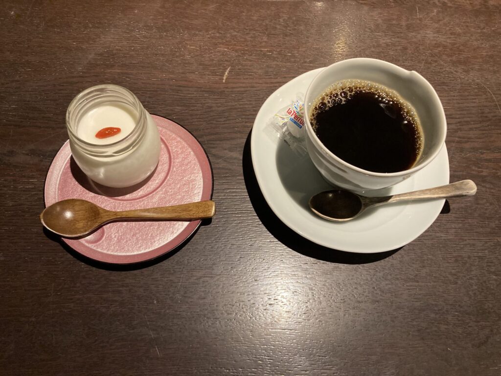 楽屋めしの食後デザート(杏仁豆腐)とコーヒーで締めくくり、最高のランチタイムでしたよ〜