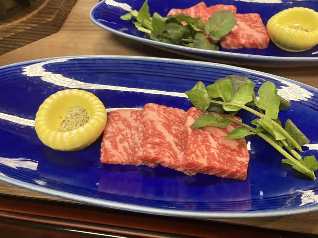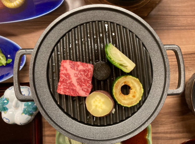 国産牛・ズッキーニなどの野菜を焼いていただく