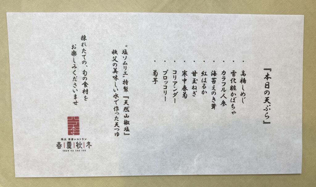 質にこだわる「地野菜の天ぷら蕎麦」も、塩ソムリエの「天然山椒塩」も美味しくて良いなと思いました♪