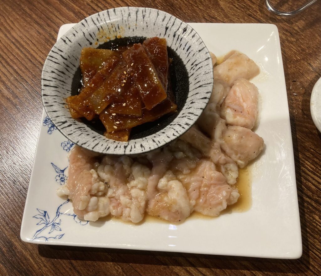 通常の3点セットは、ホルモン・マルチョウの他に「コリコリ(牛の大動脈)」なのですが、この日は品切れでコッテキを頼みました。
