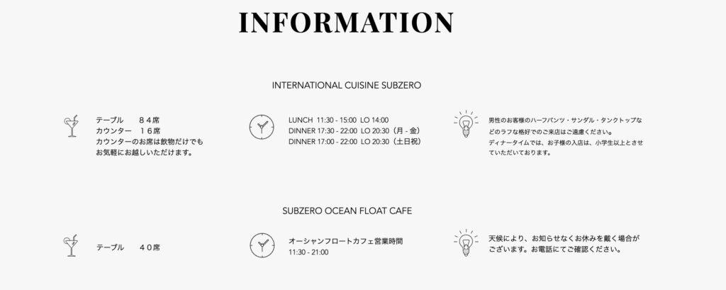 インターナショナル キュイジーヌ サブゼロ 店舗情報