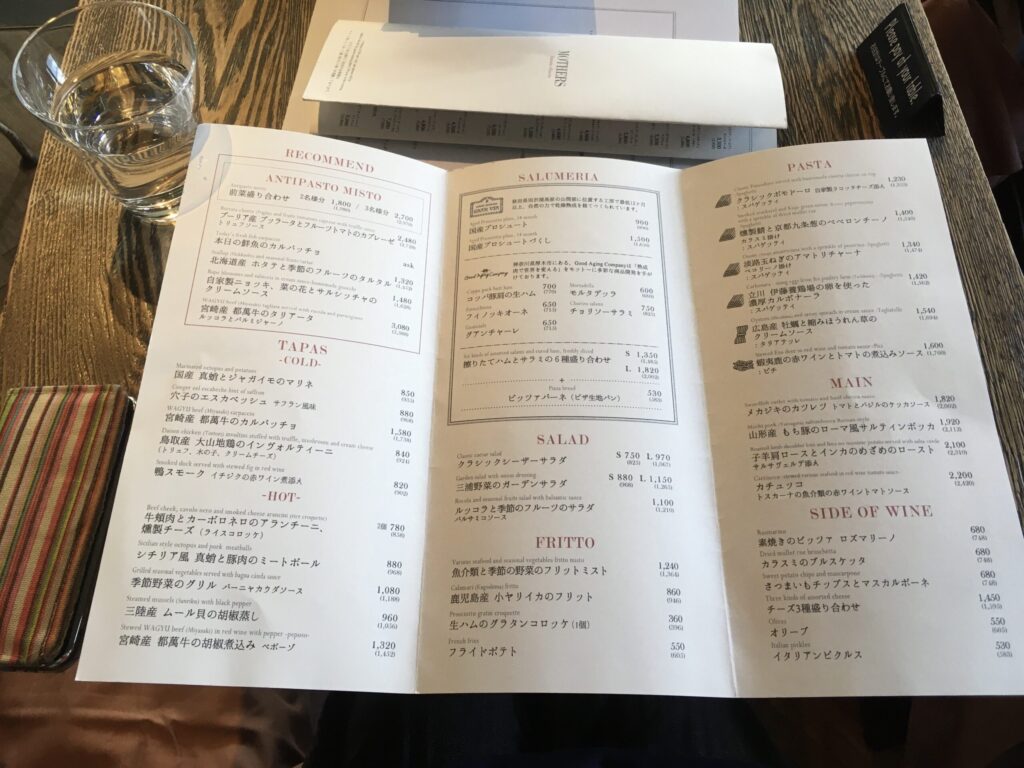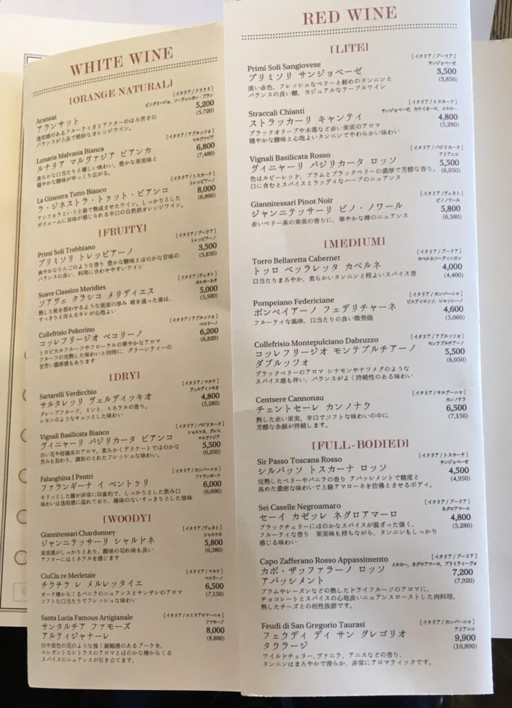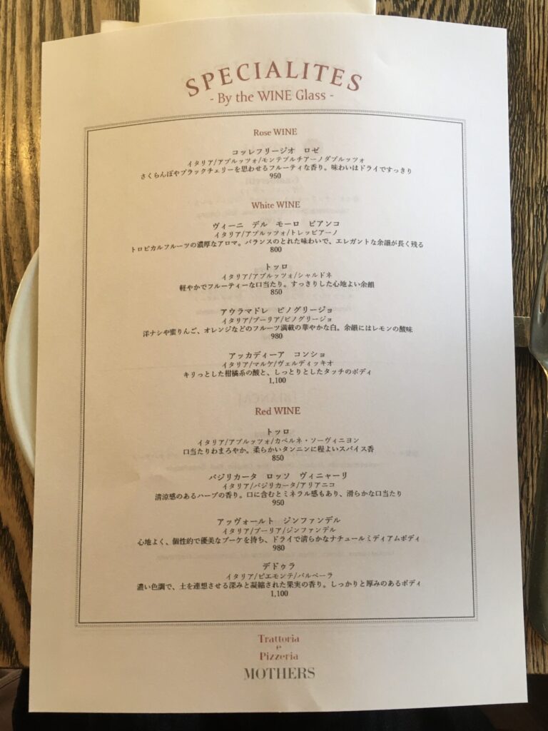 グラスワインのメニュー🍷
