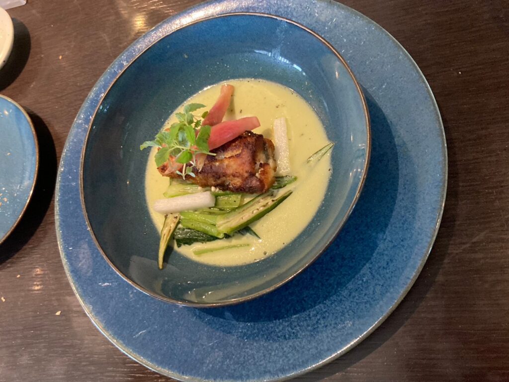 鱧のプレゼ ムール貝 空芯菜