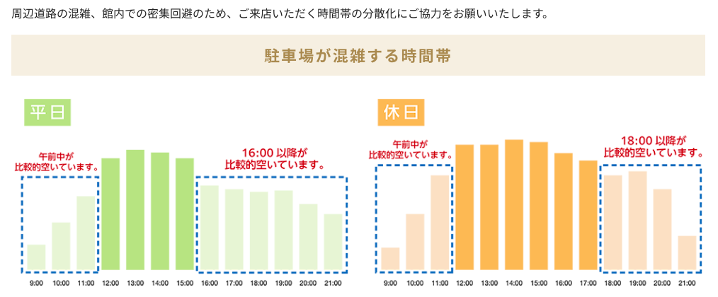 土日の周辺道路は特に大混雑するので空いている時間帯が無難!