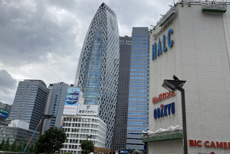 中心部に映る東京モード学園の特徴的なコクーンタワーの奥に見えるのがセンタービルです