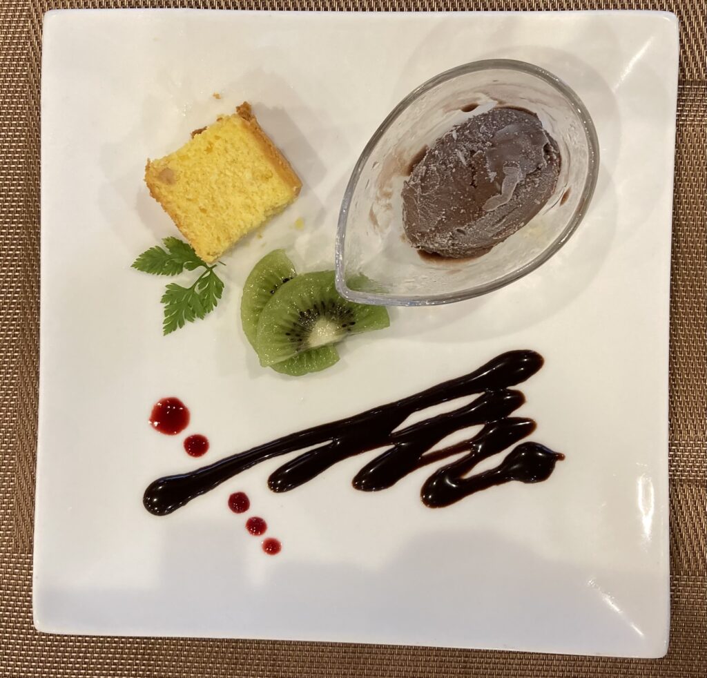 チョコのアイスと、ほんのり甘いパウンドケーキは、