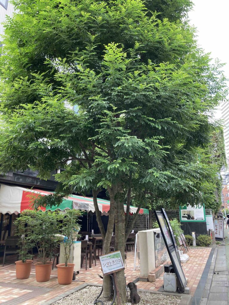 店名と同じ「シマトネリコ」という名前の樹木が、シンボルツリーに使われています