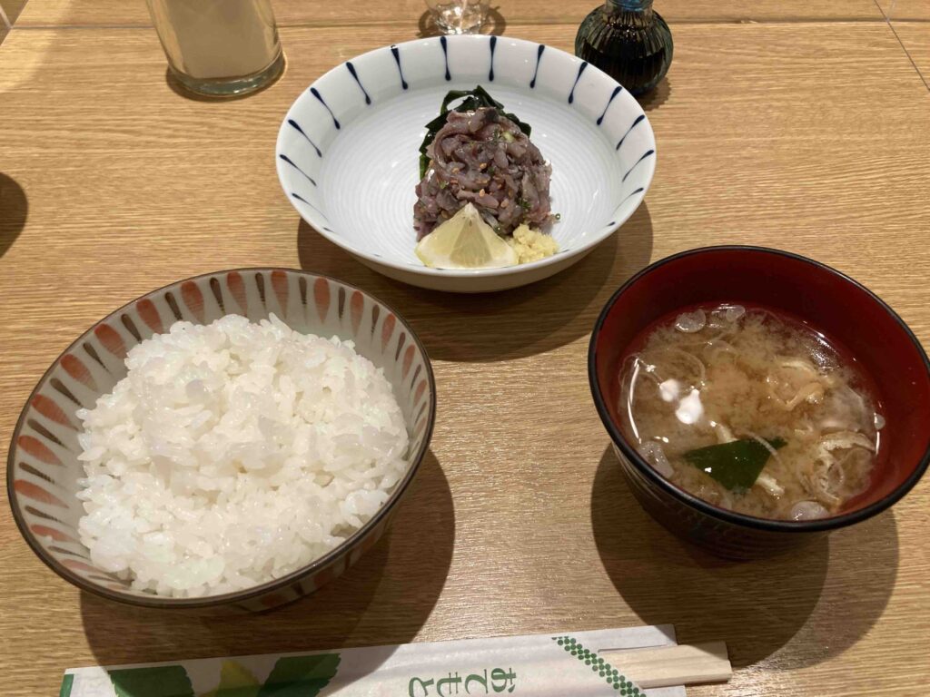 ふっくらしたご飯に良く合うお味噌汁、塩気がちょうどいいお漬物で、けっこうお腹いっぱいになりました〜