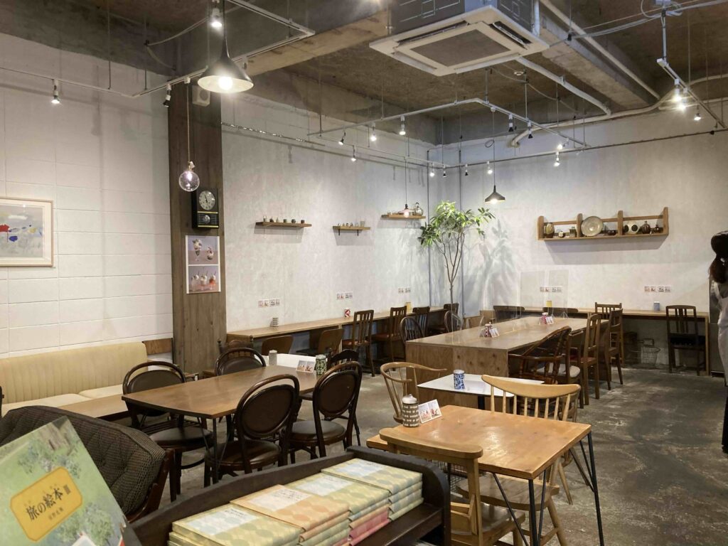 ◎ 半地下の落ち着いた空間で、雑貨スペースが併設されている