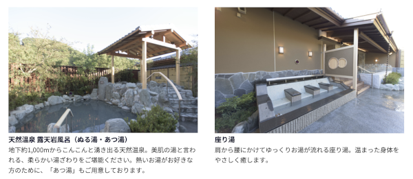 露天炭酸石張り風呂・天然温泉 露天岩風呂(ぬる湯・あつ湯)・座り湯
