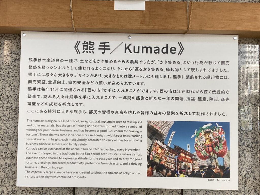 この大きな「熊手」は、都民と東京を訪れた人々の益々の繁栄を祈念して制作されたそうです!