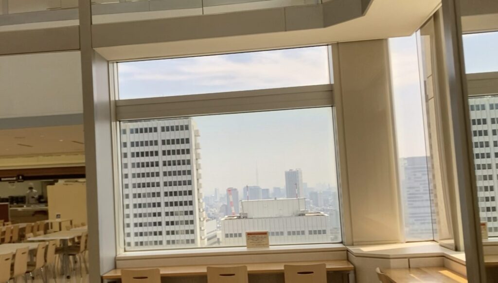 運転免許更新後に、お昼を食べようと2ヶ所ある職員食堂のうち、展望が良い方第一庁舎32階の食堂へ向かいました🎶